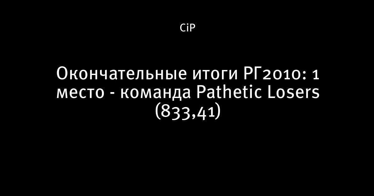 Окончательные итоги РГ2010: 1 место - команда Pathetic Losers (833,41)