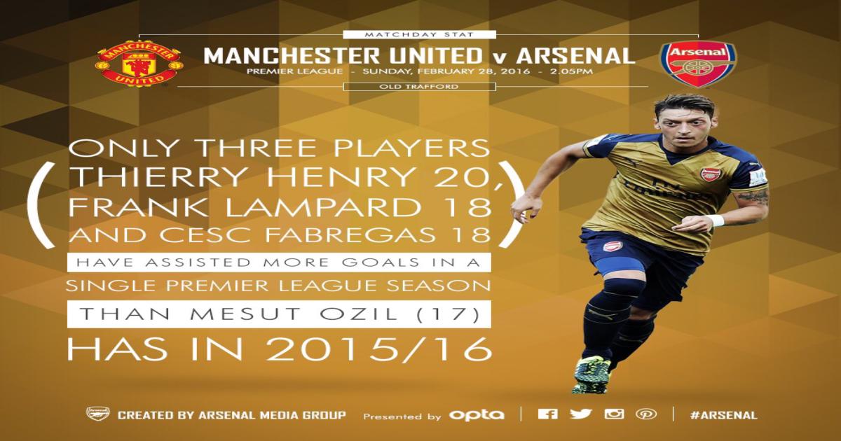 Только у трех игроков больше голевых за один сезон АПЛ, чем у Озила в сезоне 2015-2016.