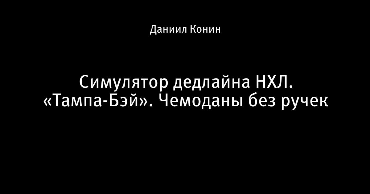 Задачи, стоявшие перед «Тампой» на пороге дедлайна переходов в НХЛ ясны, как божий день – в ростере накопилось достаточное количество «чемоданов без ручек», которые вроде бы как еще могут приносить пользу, но которые в долгосрочной перспективе могут убить все будущее «Тампы». Да, тот самый пресловутый Тампагеддон. Это слово все чаще и чаще раздается из лагеря болельщиков «молний». Готов поспорить на то, что о чем-то подобном говорят и верхи клуба.