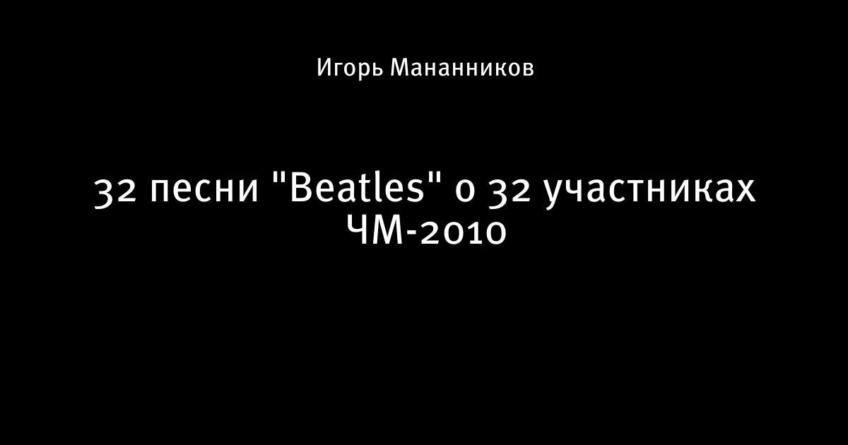 32 песни "Beatles" о 32 участниках ЧМ-2010
