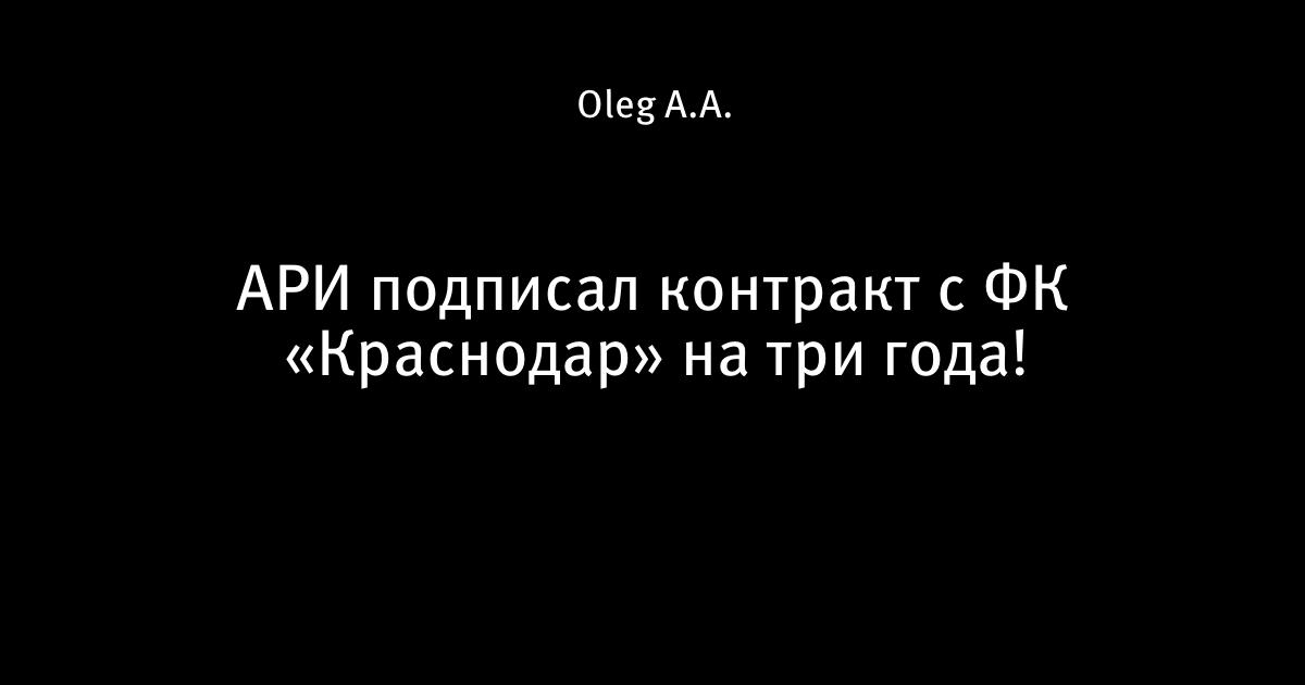 АРИ подписал контракт с ФК «Краснодар» на три года!