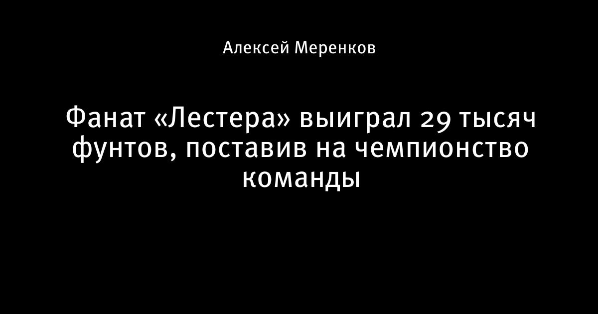Фанат «Лестера» выиграл 29 тысяч фунтов, поставив на чемпионство команды
