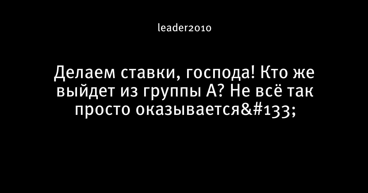 Делаем ставки, господа! Кто же выйдет из группы А? Не всё так просто оказывается