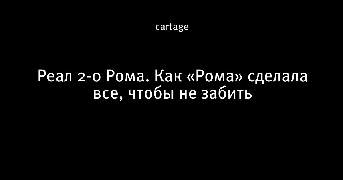 Чтобы создать ощущение интриги в ответном матче с «Реалом», да еще и в Мадриде, «Роме» было необходимо сочетание нескольких факторов, причем в определенной последовательности. Это: быстрый гол, спокойная игра вторым номером, удача, отсутствие желтых карточек у защитников, идеальный быстрый выход из обороны, плохой день у Криштиану Роналду, запас сил на финальный навал, расслабленность Данило и Марсело, удача, стопроцентная реализация моментов, удача, чудо и удача.