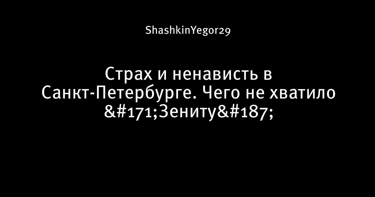 Страх и ненависть в Санкт-Петербурге. Чего не хватило «Зениту»