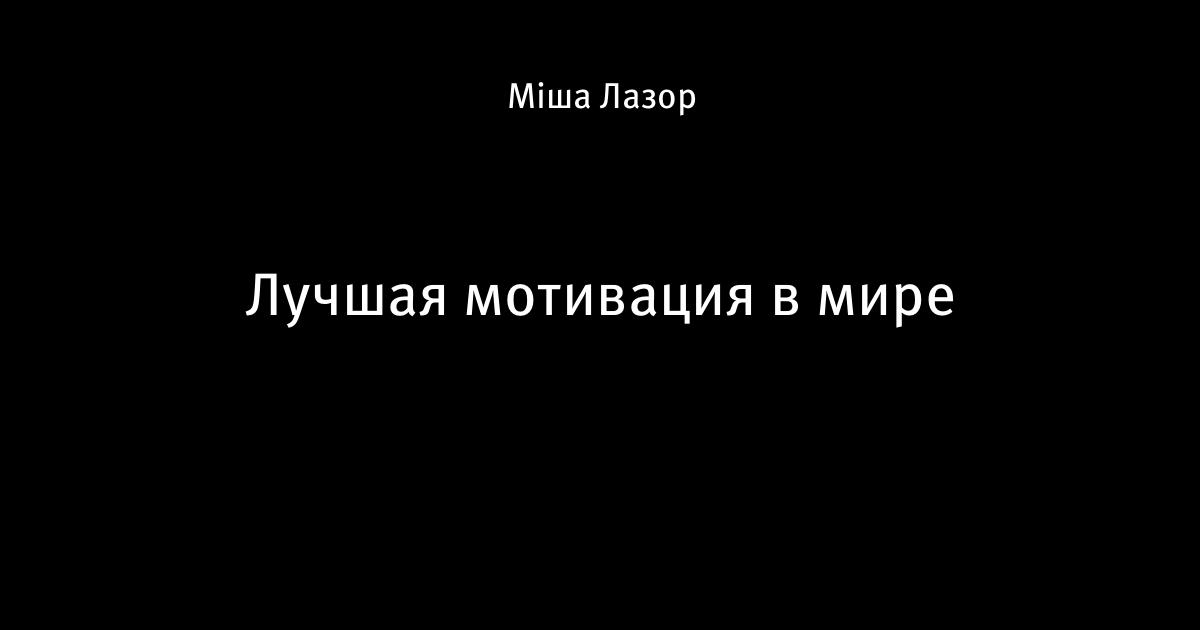 12 марта 2016, 15:06 Лучшая мотивация в мире Этот пост написан пользователем Sports.ru, начать писать может каждый болельщик (сделать это можно здесь). 1 Автор Міша Лазор Этот пост опубликован в блоге на Трибуне Sports.ru. Присоединяйтесь к крупнейшему сообществу спортивных болельщиков! Другие посты блога Лучшая мотивация в мире
