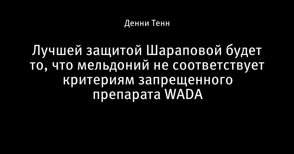 Мой совет Шараповой и десяткам (сотням?) других спортсменов, которые были пойманы на мельдонии, что им стоит взывать к ВАДА для принятия наиболее рационального способа добавления препарата в свой список. Антидопинговые усилия не могут позволить себе сглаживать углы или обращаться к морализаторству. Если они будут так поступать, то будут оторваны от науки и, возможно, сами станут причиной ущемления прав спортсменов. Что бы вы не думали о Шараповой и других «на мельдонии», этот эпизод дает прекрасную возможность улучшить научное обоснование анти-допинговых мер, которые в будущем смогут помочь всем спортсменам.