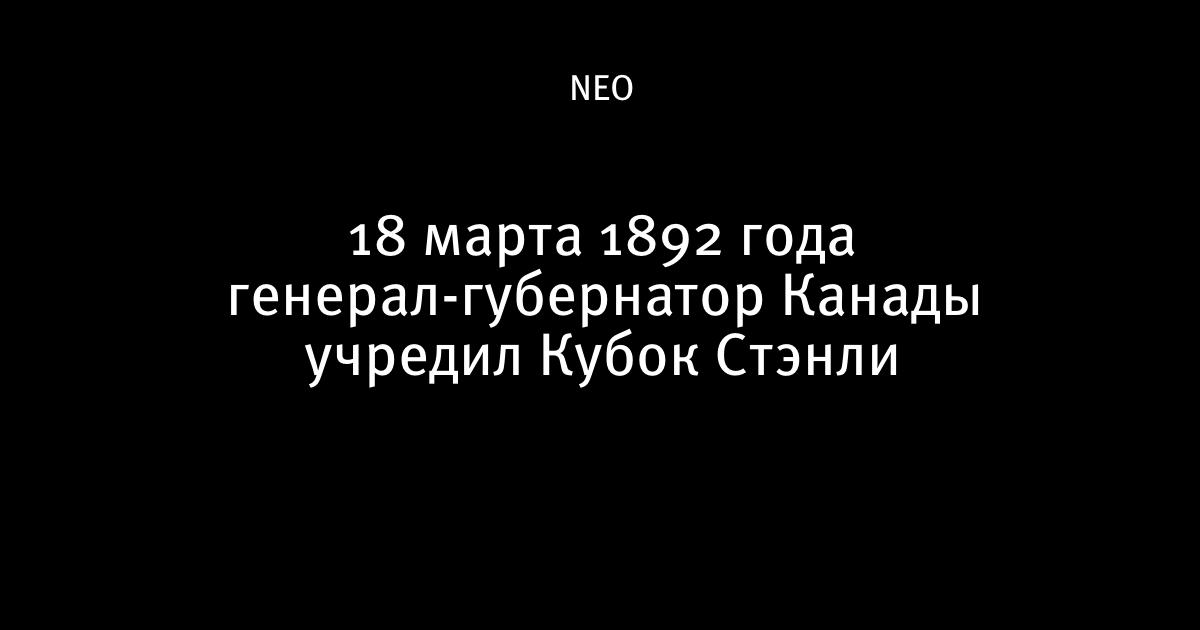 В этот день, 18 марта 1892 года Генерал-губернатор Канады сэр Фредерик Артур Стэнли учредил Кубок для лучшей хоккейной команды Канады, в последствие названный в его честь – Кубок Стэнли. Первоначальное название трофея «Хоккейный Кубок вызова».