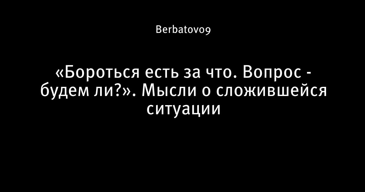 «Бороться есть за что. Вопрос - будем ли?». Мысли о сложившейся ситуации