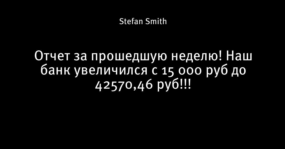 Отчет за прошедшую неделю! Наш банк увеличился с 15 000 руб до 42570,46 руб!!!