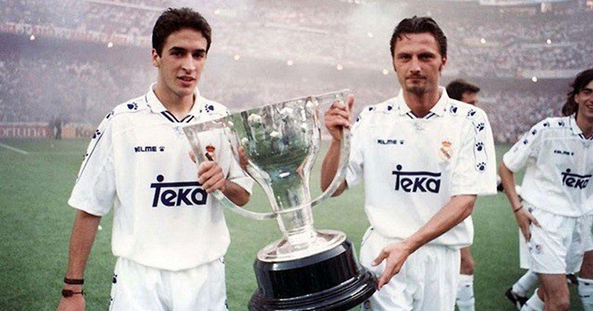 22 марта 2016, 07:08 Рауль и Петер Дубовский с кубком Ла Лиги 1995 год Автор Алексей Меренков Этот пост опубликован в блоге на Трибуне Sports.ru. Присоединяйтесь к крупнейшему сообществу спортивных болельщиков! Другие посты блога Old School Рауль Реал Мадрид Ла Лига фото