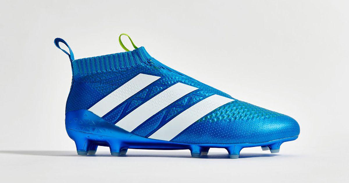 То, что вы видите на фото — новый дизайн бутс ACE 16+ Purecontrol под названием «Shock Blue» от adidas. В этих бесшнурковых бутсах футболисты будут выступать в Европейских чемпионатах и Кубке Америке этим летом.