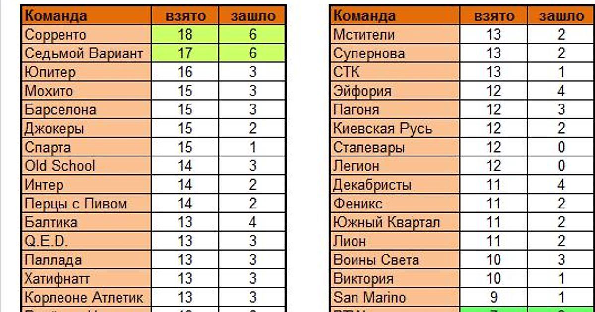 2-8-14. Эти три варианта на каждой линии обеспечили RTW не только победу над оппонентами, но и первое место по сумме УВ в туре среди всех команд. 15 УВ, как и в предыдущем туре, стали максимумом. На 2 варианта меньше угадало Сорренто, выделившись 2 линиями с 4 УВ. По 11 пунктов в активе у Эйфории и Балтики. У эйфов, как видно, все сыграли ровно (3-2-2-2-2), у "пивоваров" одна линия всё же немного просела. Но 1 УВ - это практически норма, если глянуть на общий средний показатель. 23 коллектива не избежали "баранок" в раскладке, а Легион и Сталеваров постигла печальная участь Виктории - пять "нулей", ни одного угаданного варианта из 35...