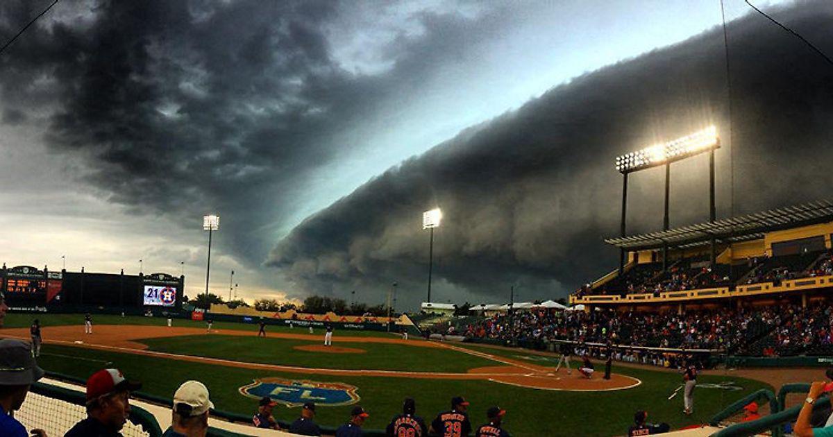 В предсезонной бейсбольной игре между Atlanta Braves и Houston Astros над стадионом появилась жуткая туча.