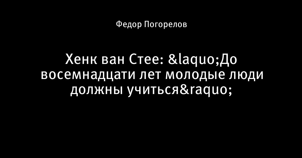 Хенк ван Стее: «До восемнадцати лет молодые люди должны учиться»