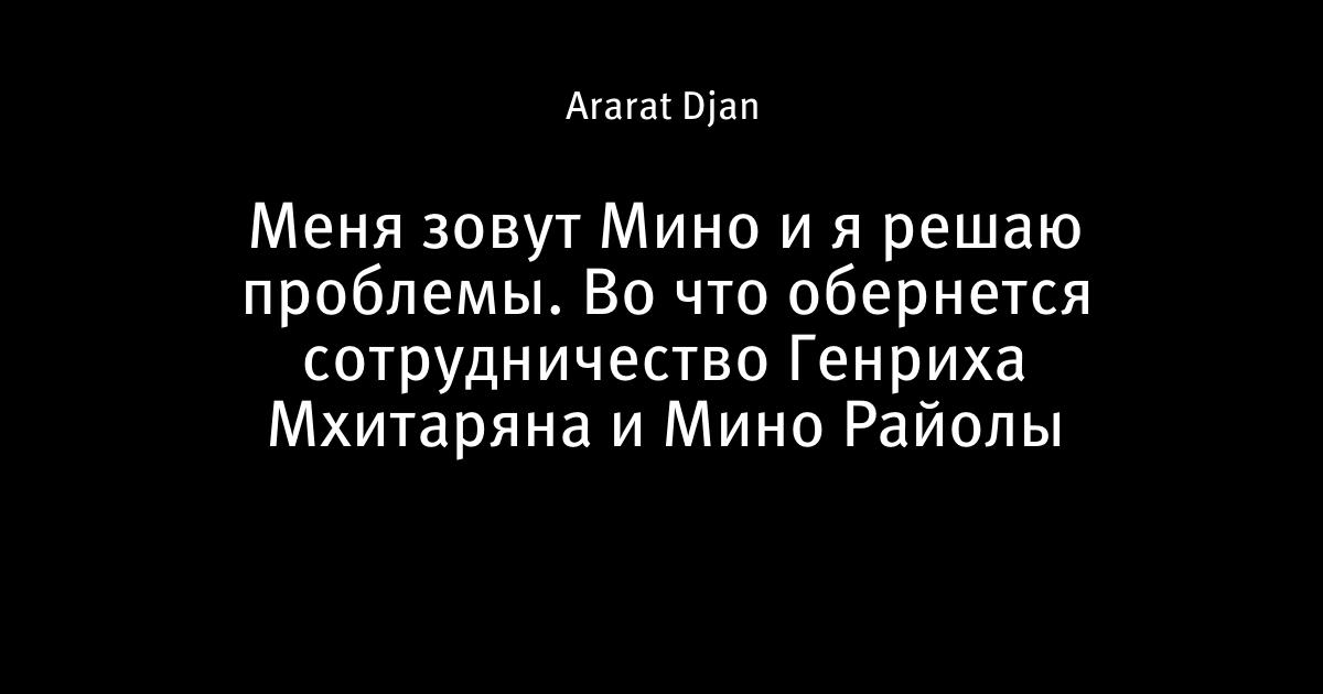 Меня зовут Мино и я решаю проблемы. Во что обернется сотрудничество Генриха Мхитаряна и Мино Райолы