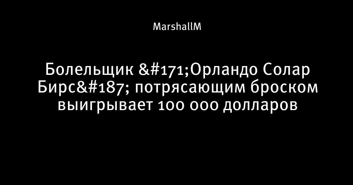 8 апреля 2016, 23:04 Болельщик «Орландо Солар Бирс» потрясающим броском выигрывает 100 000 долларов 1 Автор MarshallM Этот пост опубликован в блоге на Трибуне Sports.ru. Присоединяйтесь к крупнейшему сообществу спортивных болельщиков! Другие посты блога Вы это видели? ECHL