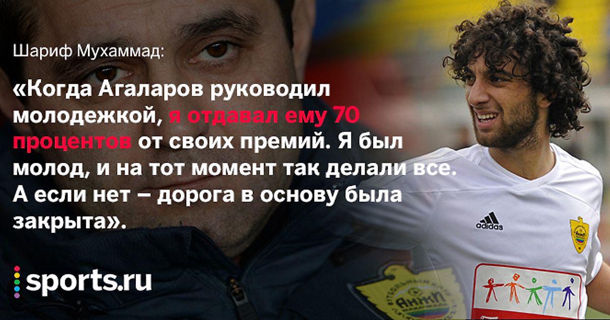 В понедельник в интервью сайту канала «Матч ТВ» бывший полузащитник «Анжи» Шариф Мухаммад рассказал много интересного о происходившем в «Анжи» несколько лет назад и о нынешнем главном тренере команды Руслане Агаларове, который тогда руководил молодежкой. Например, вот это: