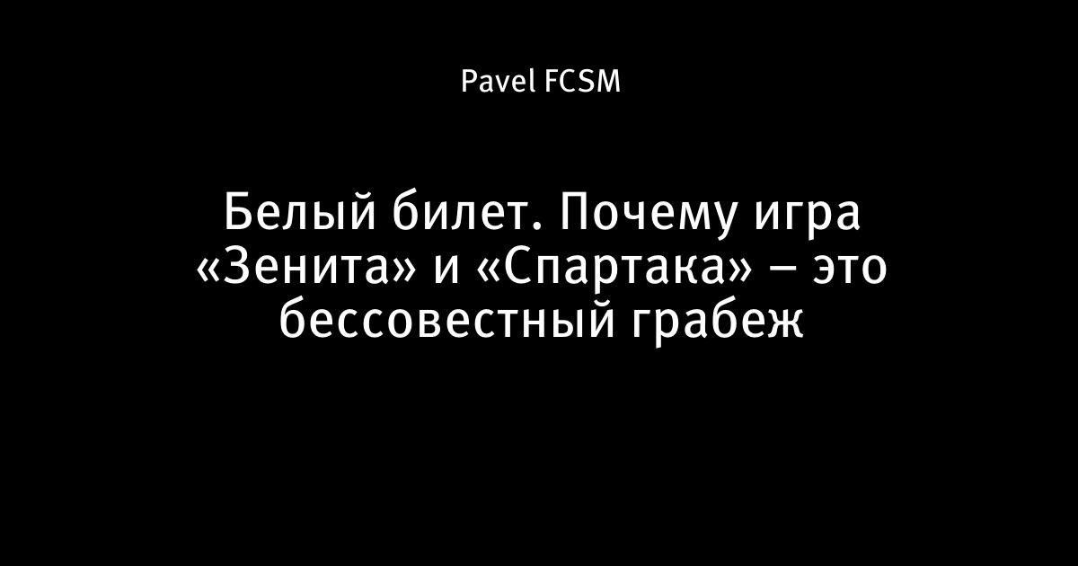 Белый билет. Почему игра «Зенита» и «Спартака» – это бессовестный грабеж