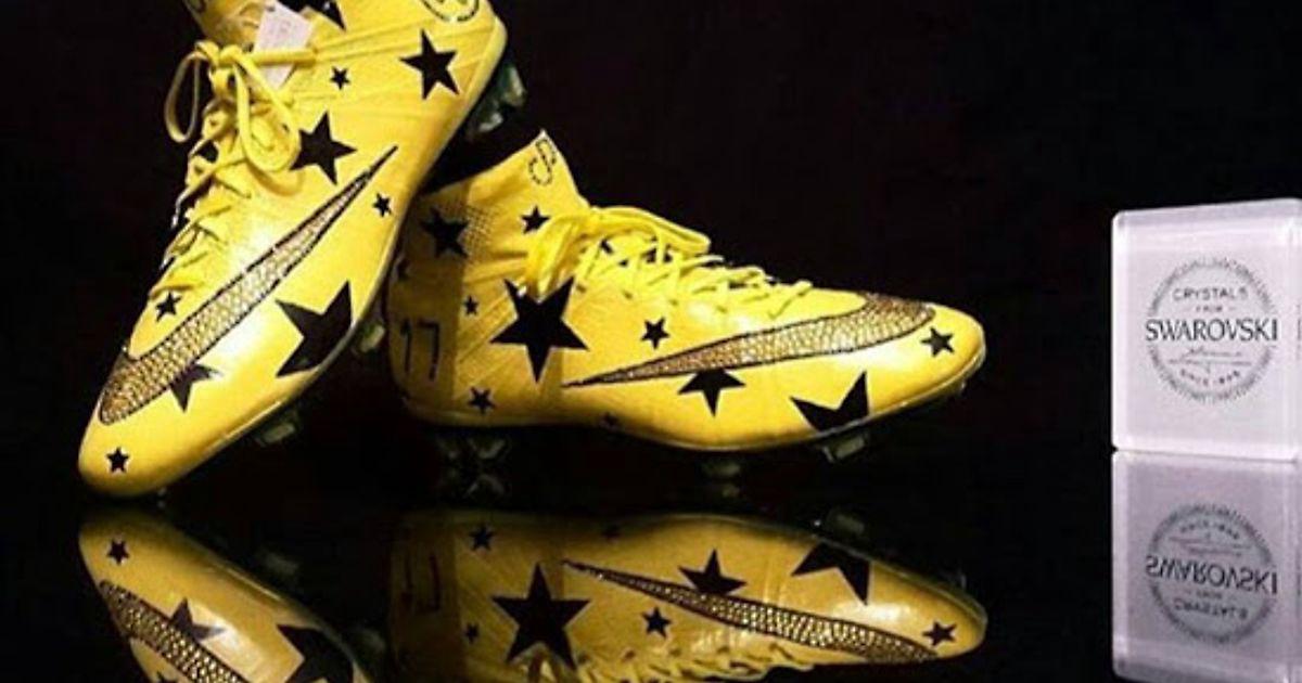 На верхней части бутс желтого цвета нанесены черные звезды, на внешней стороне бутс расположилась эмблема Боруссии, на пятке игровой номер Обамеянга 17, логотип Nike обведен тонкой черной линией. Главной особенностью этих бутс являются кристаллы Сваровски, которым инкрустирован логотип Nike, номер 17 и эмблема клуба.