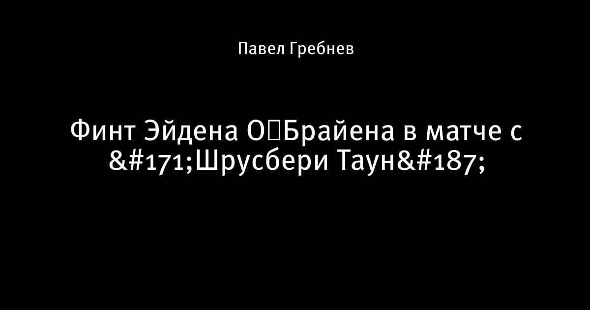 13 апреля 2016, 18:03 Финт Эйдена О′Брайена в матче с «Шрусбери Таун» 1 Автор Павел Гребнев Этот пост опубликован в блоге на Трибуне Sports.ru. Присоединяйтесь к крупнейшему сообществу спортивных болельщиков! Другие посты блога Эстетика футбола Шрусбери Эйден О′Брайен Д3 Англия Миллуолл