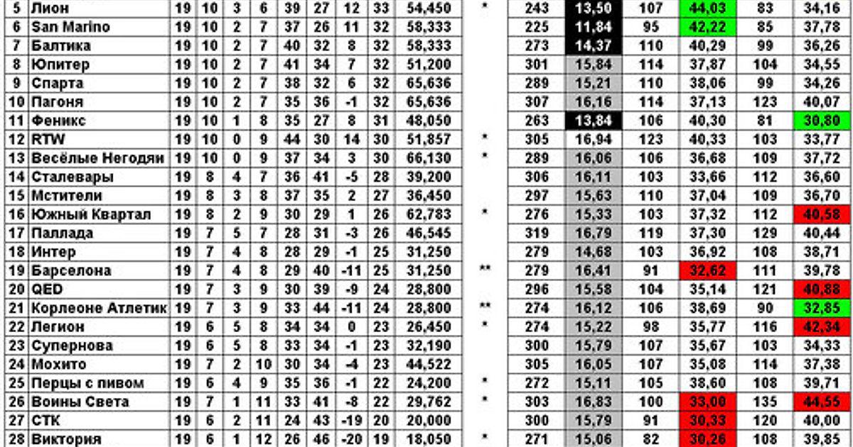 Всё, заканчиваю «каркать» и нагнетать)))! Пока что в группе 1–8 при чёткой диспозиции на первом и последнем местах нет ни малейшей ясности. Теоретически Эйфория всё еще может закончить чемпионат вне призовых мест, а Балтика – наоборот, почти в призёрах. Практически, конечно, это бред, но романтиков-то у нас всегда было как собак нерезаных.