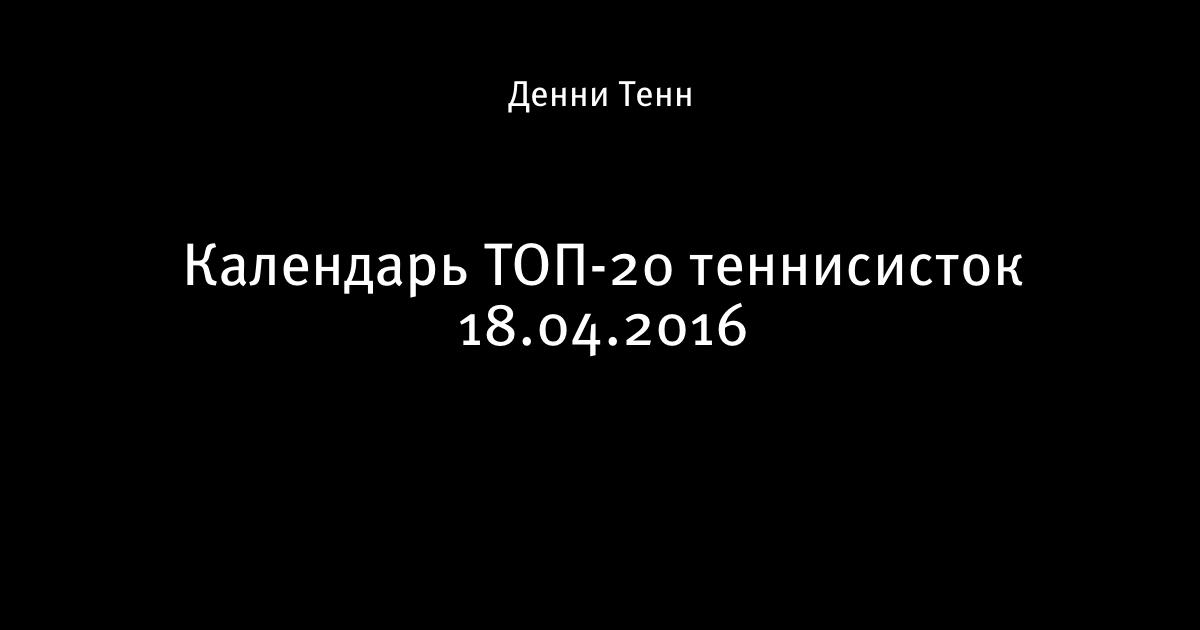 18 апреля 2016, 23:42 Календарь ТОП-20 теннисисток 18.04.2016 ТОП-20 теннисисток заявили свое участие в следующих турнирах: > Автор Денни Тенн Этот пост опубликован в блоге на Трибуне Sports.ru. Присоединяйтесь к крупнейшему сообществу спортивных болельщиков! Другие посты блога Nasha Masha WTA
