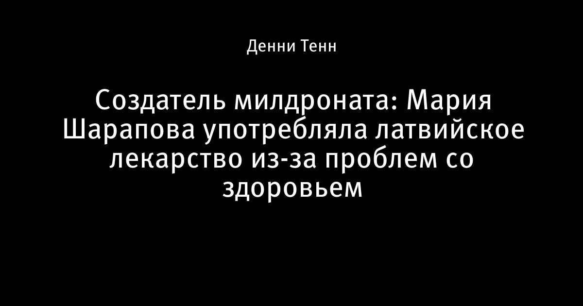 – Кстати, я знал, что Мария его употребляет. Шараповой бы просто не было, если бы все последние годы она не принимала милдронат. У нее есть определенные проблемы. Не только спортсмены высшего класса, но политики, причем как в России, так и в США, играя в теннис, принимают милдронат. Ну и что?