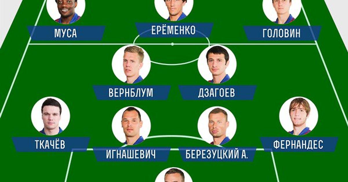 Запасные: Чепчугов, Васин, Тошич, Панченко, Набабкин, Широков, Натхо Б., Чалов.Начало матча в 19:30 по московскому времени. Прямая трансляция на телеканале "Матч ТВ".