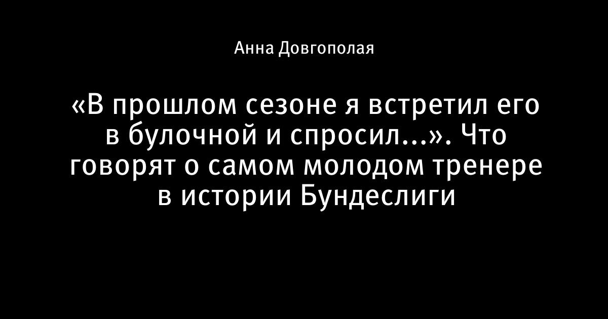 «В прошлом сезоне я встретил его в булочной и спросил...». Что говорят о самом молодом тренере в истории Бундеслиги