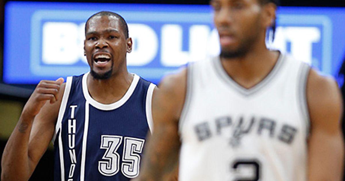Их защита оказалась неразрешимой: Ленард и Грин прихватили Расселла Уэстбрука (5 из 19, 9 передач), и на этом вся активность «Тандер» иссякла. Попытки найти Дюрэнта (6 из 15) в «посте» были крайне неэффективны, так как того выталкивали и броски получались слишком сложными. Из остальных мяч доходил лишь до Ибаки (тот даже попадал). «Сперс» даже лишили «Оклахому» того единственного преимущества, которое могло оставить им какие-то шансы: Данкан, Олдридж и Уэст так жестко держали себя в «краске», что за подборы в нападении нужно было повоевать (всего 11). Энес Кантер вышел, получил пару раз локтями от Уэста и ушел.