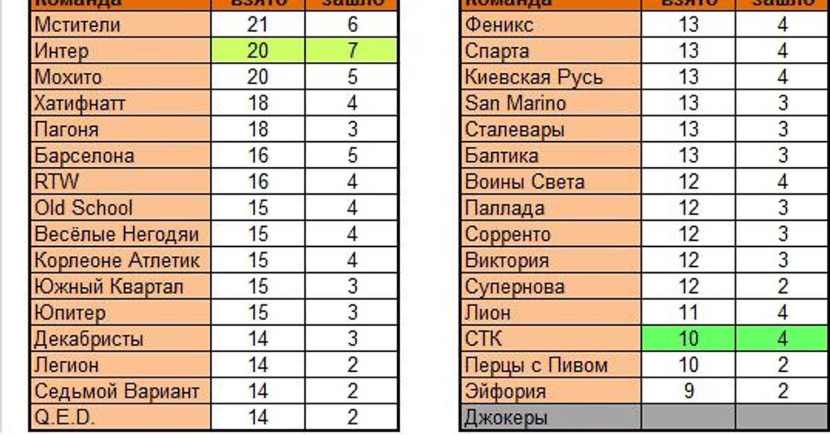 Лучшая команда тура по сумме УВ в целом: СТК (14 вариантов)