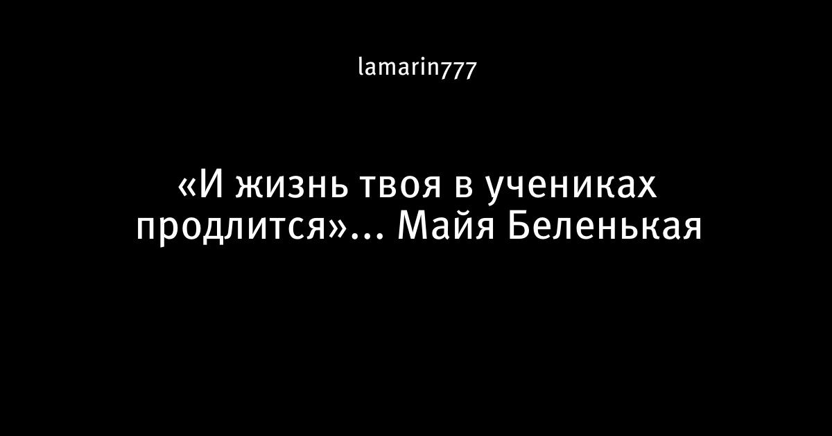 «И жизнь твоя в учениках продлится»... Майя Беленькая