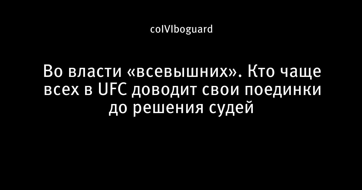 ** Перед тем, как приступить к чтению, попробуйте угадать пятерку бойцов, которые имеют наивысший процент боев, закончившихся судейским вердиктом. Если правильно назовете хотя бы двоих, можете смело говорить всем, что неплохо разбираетесь в ММА. Начнем!