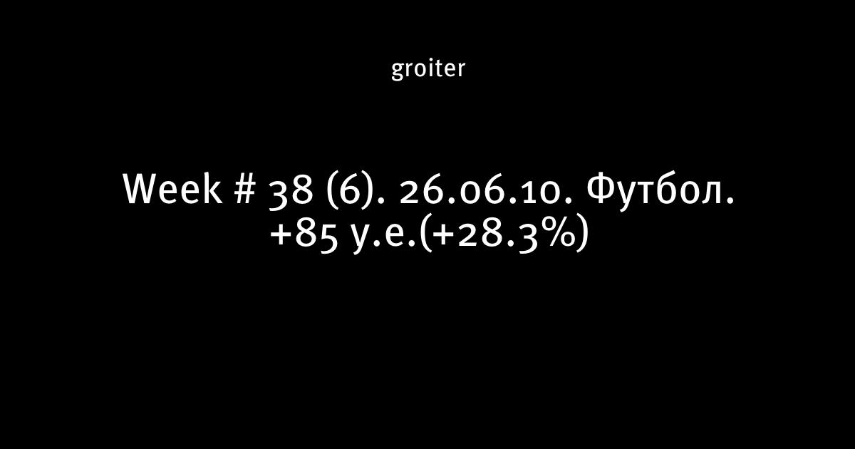 Week # 38 (6). 26.06.10. Футбол. +85 у.е.(+28.3%)