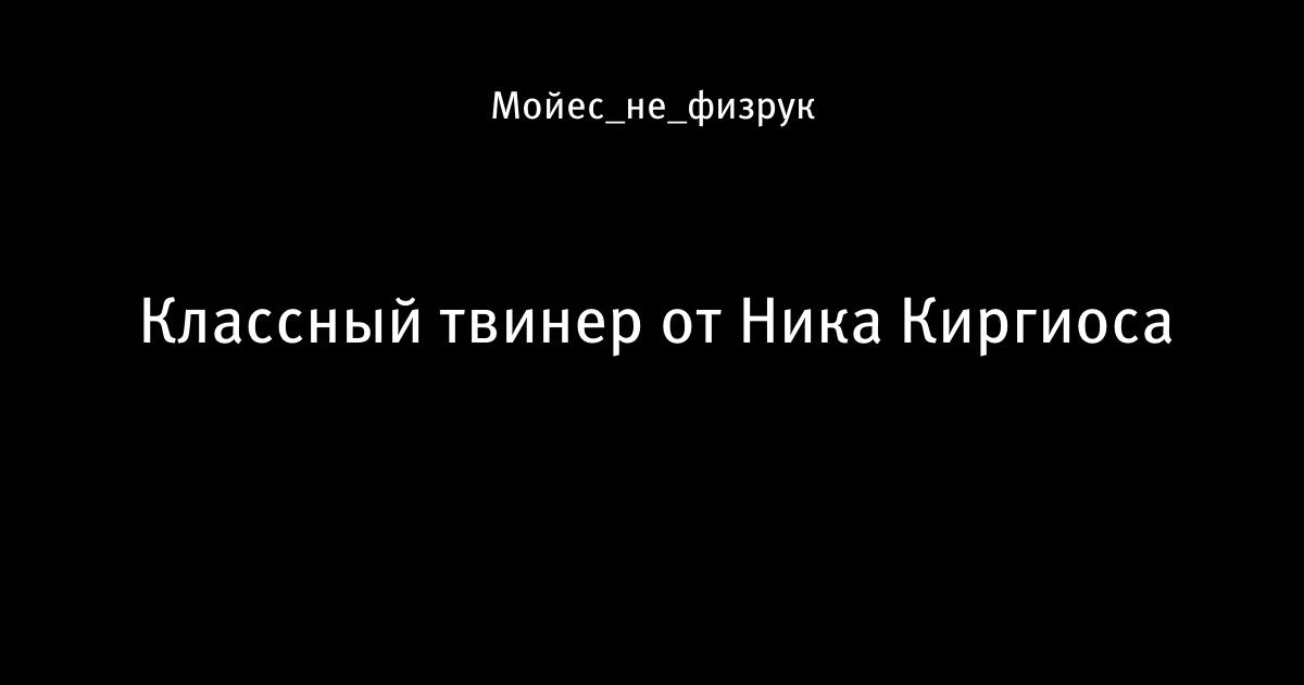 6 мая 2016, 17:20 Классный твинер от Ника Киргиоса 1 Автор Мойес_не_физрук Этот пост опубликован в блоге на Трибуне Sports.ru. Присоединяйтесь к крупнейшему сообществу спортивных болельщиков! Другие посты блога Телевизор 3.0 Ник Кириос Mutua Madrid Open ATP