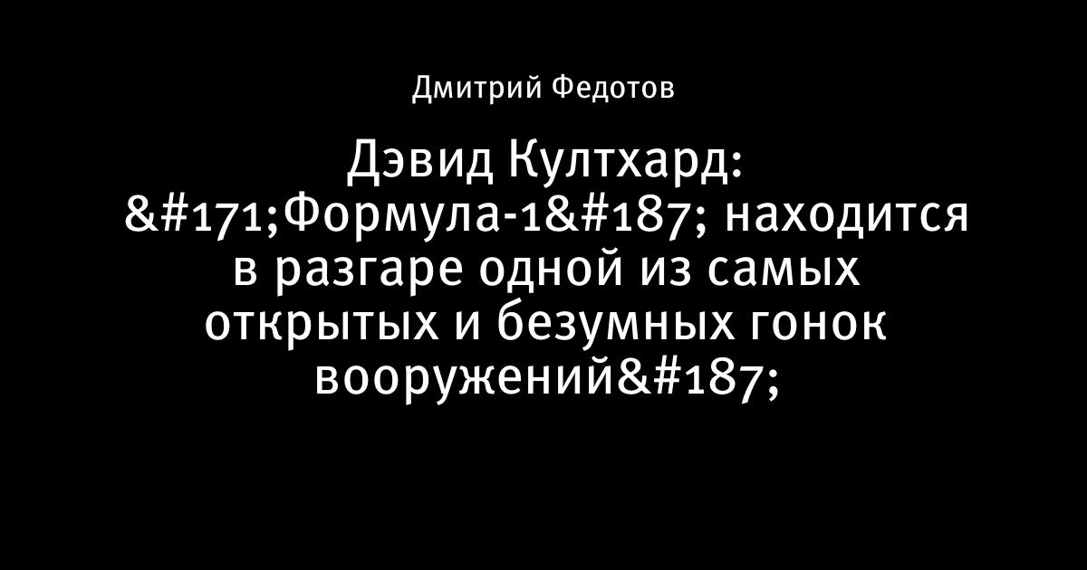 Дэвид Култхард: «Формула-1» находится в разгаре одной из самых открытых и безумных гонок вооружений»