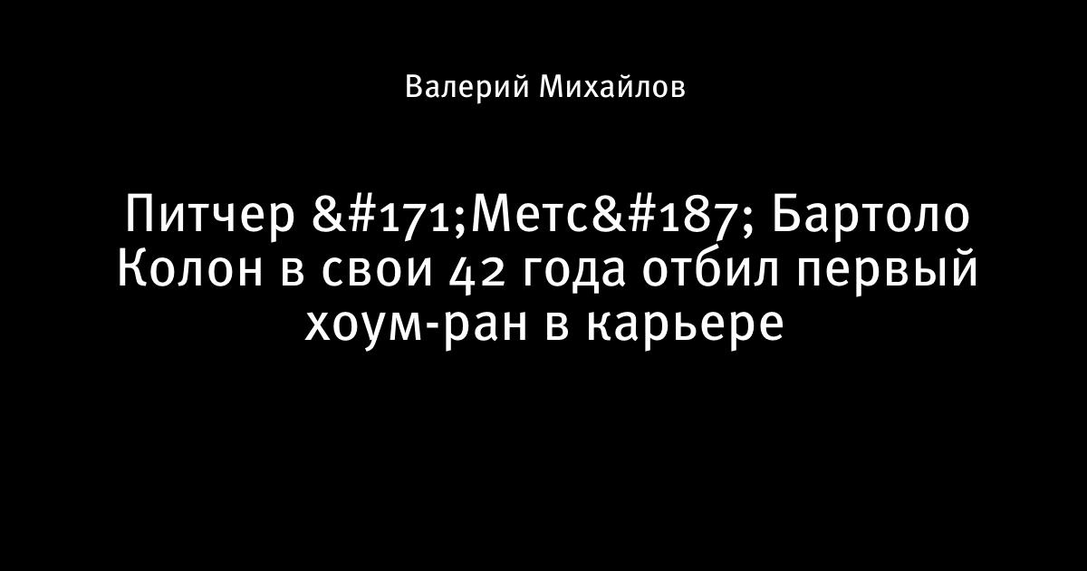 8 мая 2016, 19:47 Питчер «Метс» Бартоло Колон в свои 42 года отбил первый хоум-ран в карьере 1 Автор Валерий Михайлов Этот пост опубликован в блоге на Трибуне Sports.ru. Присоединяйтесь к крупнейшему сообществу спортивных болельщиков! Другие посты блога Fever Pitch 2.0 Метс MLB