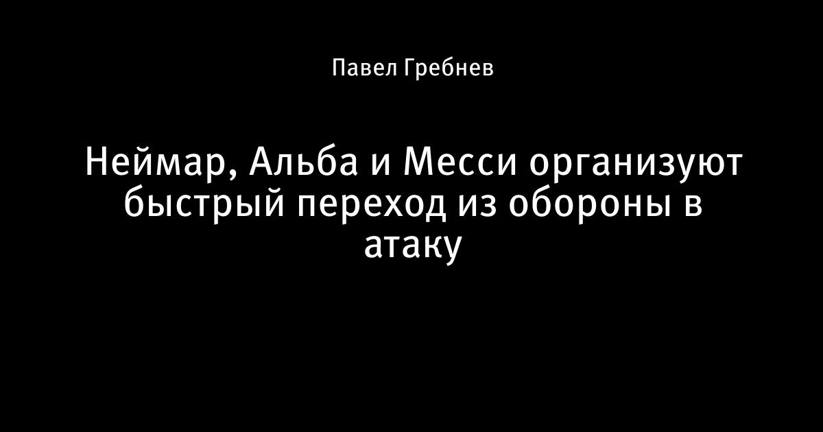 8 мая 2016, 20:21 Неймар, Альба и Месси организуют быстрый переход из обороны в атаку 1 Автор Павел Гребнев Этот пост опубликован в блоге на Трибуне Sports.ru. Присоединяйтесь к крупнейшему сообществу спортивных болельщиков! Другие посты блога Эстетика футбола Жорди Альба Неймар Лионель Месси Барселона