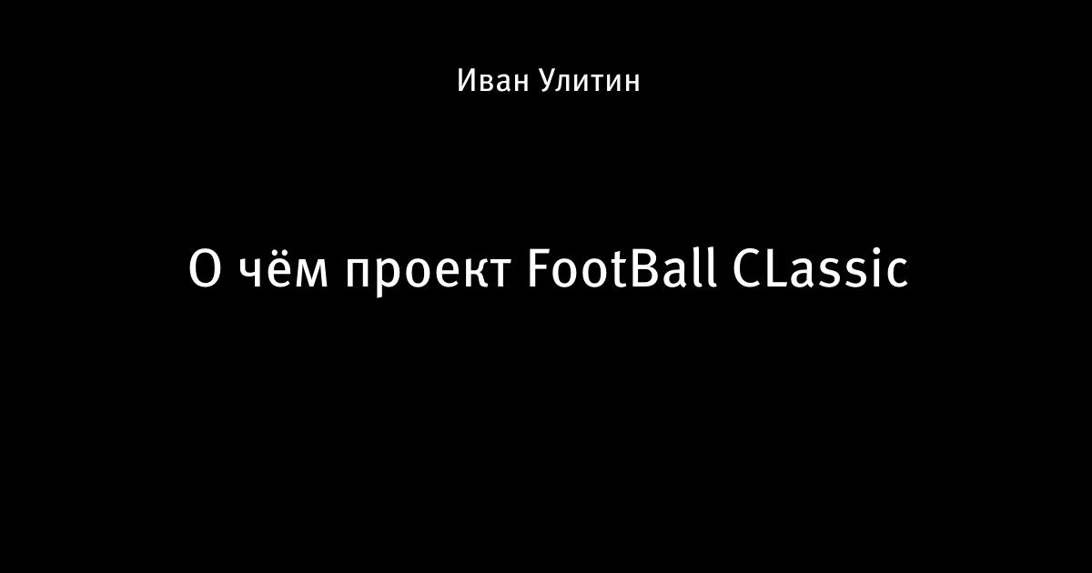 Проект fbcl.ru — это не футбольная энциклопедия и не статистический справочник. Это пространство ностальгии по временам, когда в футбол играли народные герои, а не поп-звёзды, когда самоотверженность ценилась дороже, чем расчётливость, когда футбол был для людей, а не для корпораций. Мы предлагаем с головой окунуться в эпоху романтического футбола и вновь проследить за его самыми яркими мгновениями — день за днём, матч за матчем.
