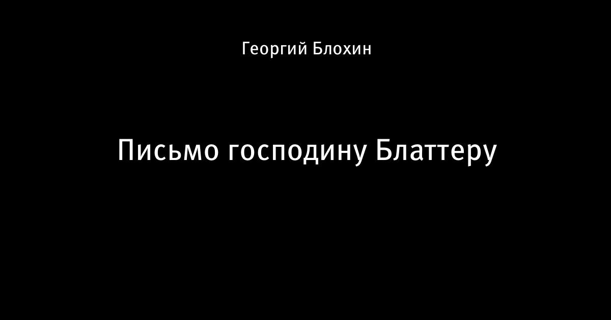 Кончилось терпение. Пора действовать. Итак, я, в надежде всеобщего понимания, пишу господину Блатту Блаттеру, а тот пусть, если получит мою весточку, прочитает его Платини (я даже несколько подзабыл его, без сомнений, великое прошлое) и пусть они вместе захлебнутся в своей ослиной упертости. Ну что ж, к делу: