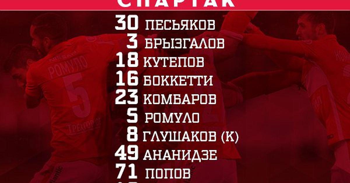 «Спартак»: Песьяков, Брызгалов, Кутепов, Боккетти, Д. Комбаров, Ромуло, Глушаков (к), Ананидзе, Попов, Мельгарехо, Промес.
