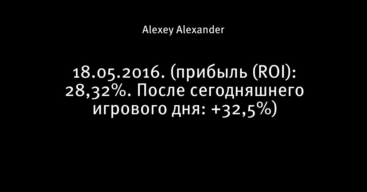 18.05.2016. (прибыль (ROI): 28,32%. После сегодняшнего игрового дня: +32,5%)