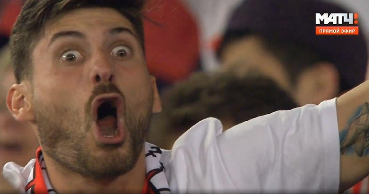 Эмоции одного из болельщиков «Севильи» после гола Кевина Гамейро