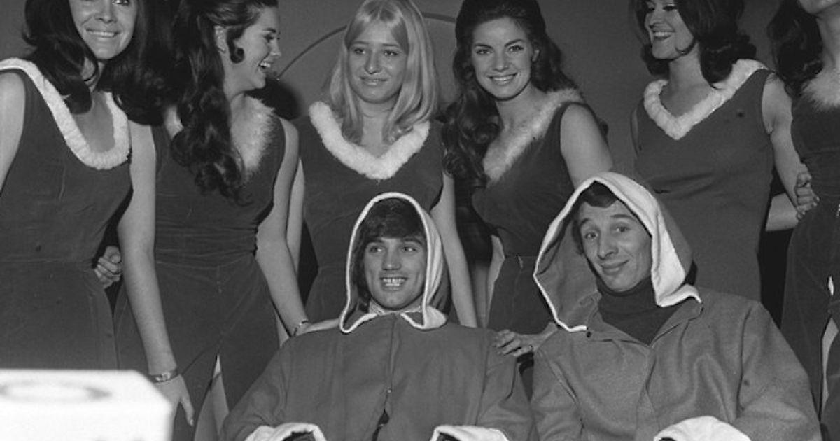 16 декабря 1969 года. Бест и Саммерби в окружении моделей на благотворительном показе фильма в манчестерском кинотеатре Odeon Cinema