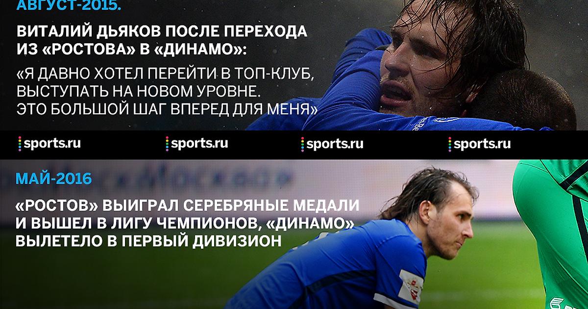 22 мая 2016, 15:00 Самый глупый трансфер сезона Виталий Дьяков зачем-то сменил «Ростов» на «Динамо». Фото: РИА Новости/Алексей Филиппов Автор Sports премьер-лига Россия Виталий Дьяков Динамо Москва Первая лига