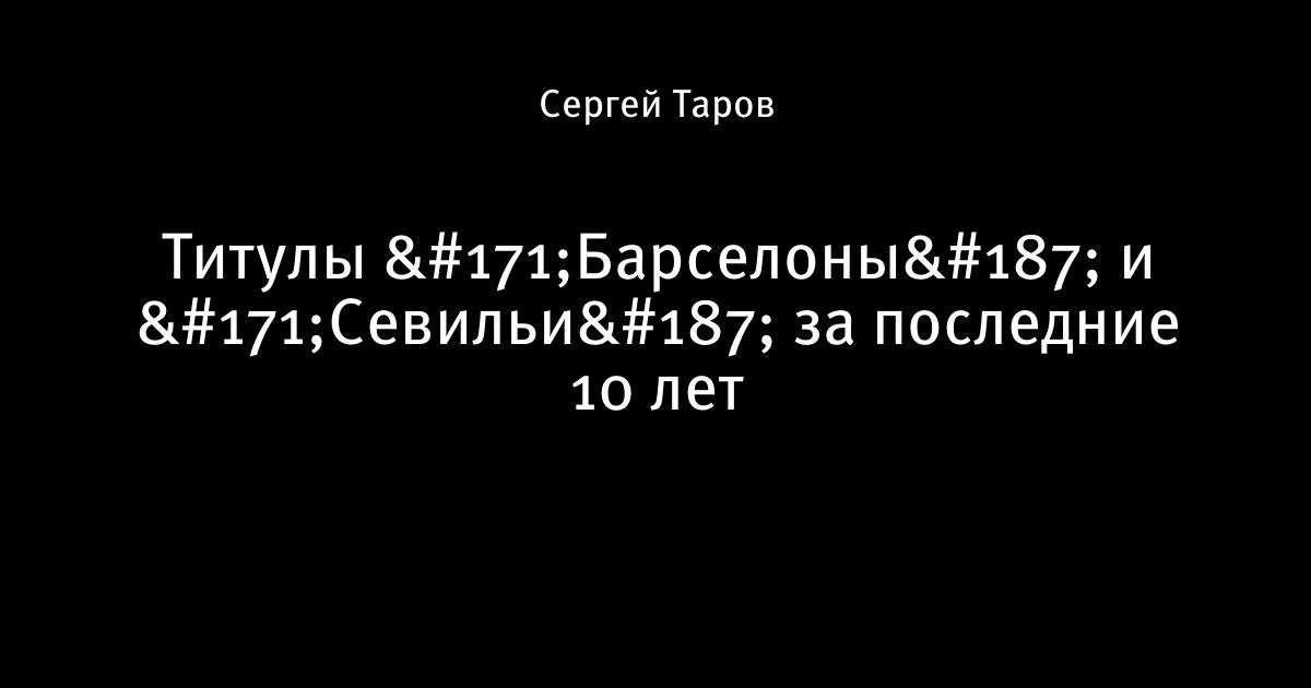 22 мая 2016, 15:49 Титулы «Барселоны» и «Севильи» за последние 10 лет Автор Сергей Таров Этот пост опубликован в блоге на Трибуне Sports.ru. Присоединяйтесь к крупнейшему сообществу спортивных болельщиков! Другие посты блога Barça Кубок Испании Неймар Севилья Лионель Месси Барселона Луис Суарес Дани Алвес