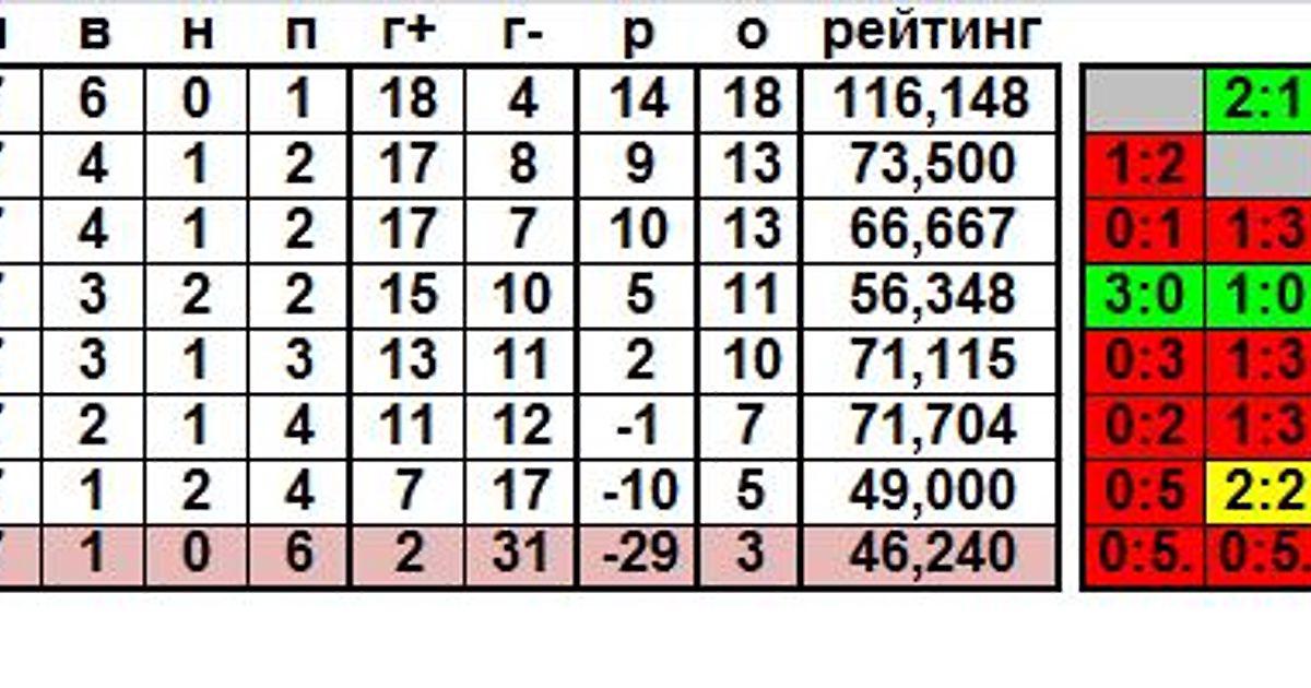 - Общие результаты в чемпионате: 22 матча, +12=3–7, голы 53-30, 39 очков
