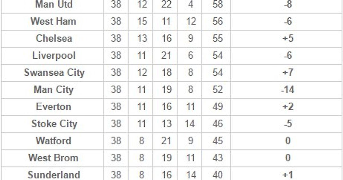 Манчестер Сити бы опустился в таком случае на 10 строчку и лишился Лиги Чемпионов.
