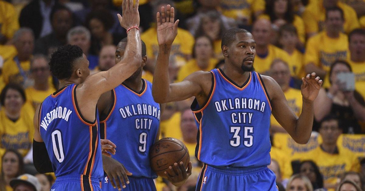 Например, Ибака. «Ну какой он «Мистер замок, когда у него меньше десяти подборов?». Ок, значит за него их доберут Дюрант и Уэстбрук. Формально, это должно было бы тормозить быстрые отрывы, но там столько атлетизма, что фраза «мяч всегда летит быстрее» не очень работает в этом конкретном случае. А Ибака зато все попадет издали (в нужный момент) и отработает в ногах в защите.